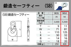 バックル寸法 LBC500 破断強度1,500kgf